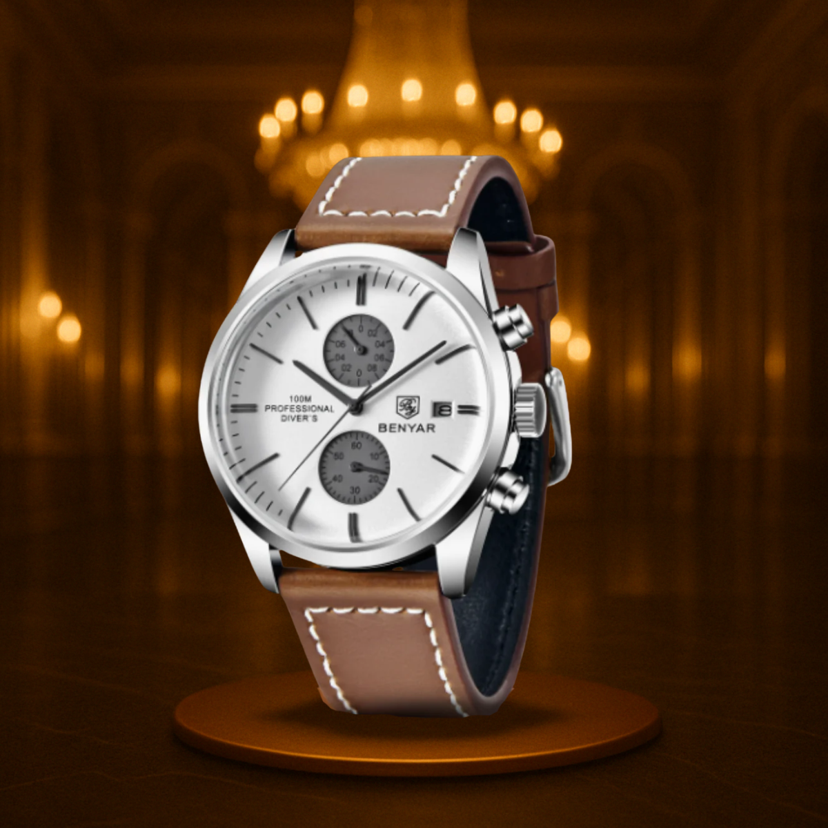 The Men's Sports Watch combines a sleek, minimalistic design with essential features for an active lifestyle. With its 42 mm dial and chronograph display, this watch is perfect for daily wear, offering both style and functionality.